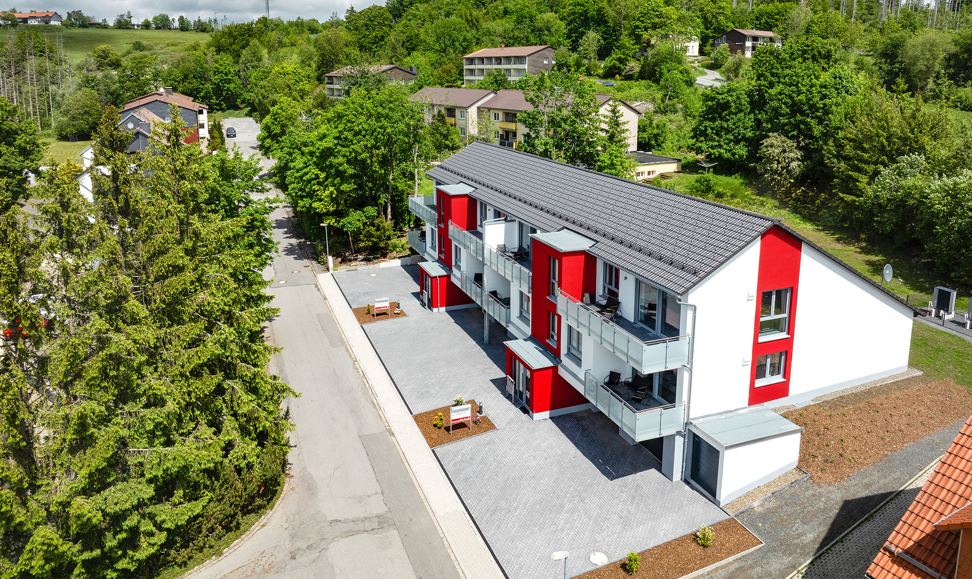 - Einzelgaragen mit Wallbox für jede Wohnung und direktem Zugang ins Haus.