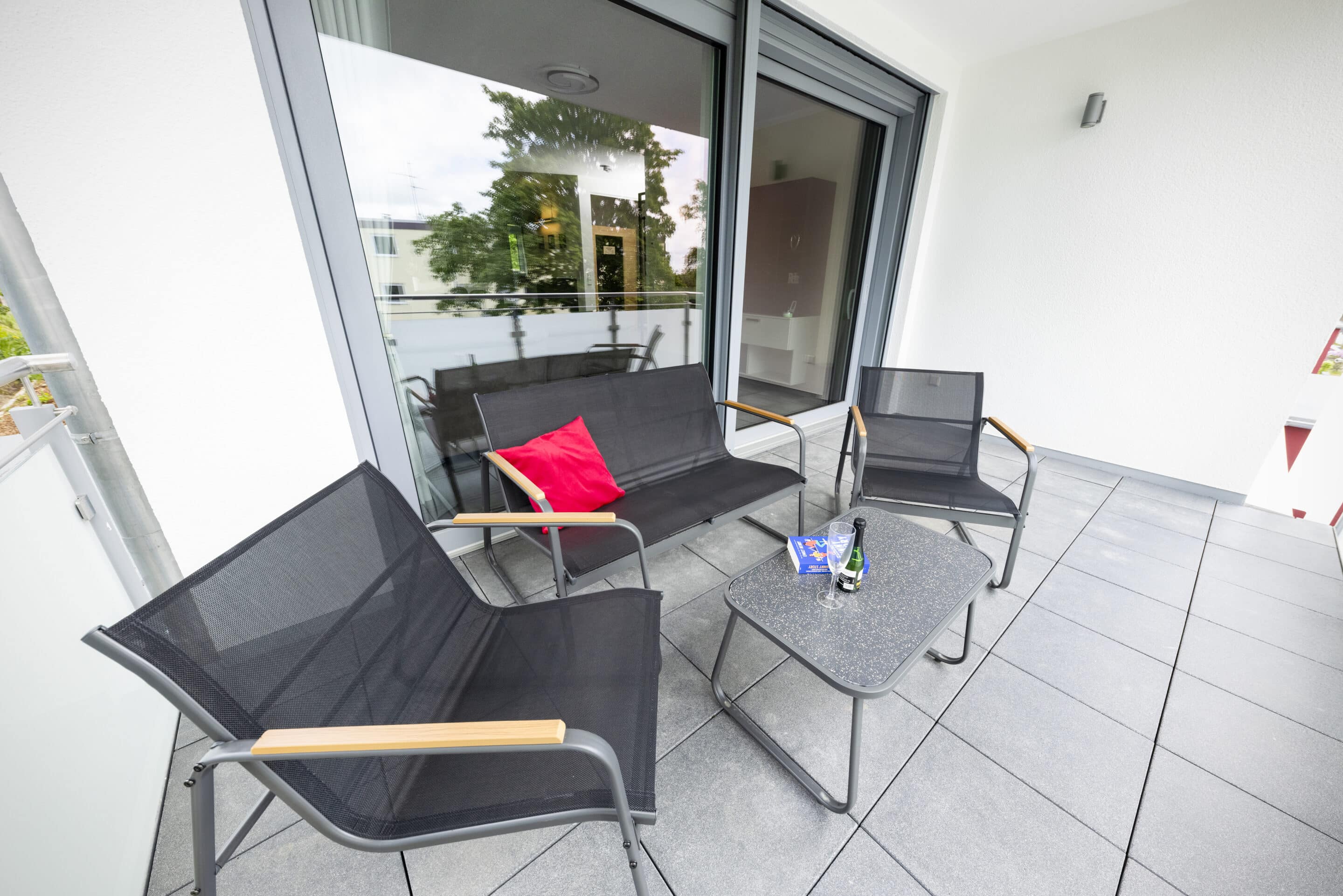 Der elegant gestaltete Balkon ist der perfekte Ort, um die frische Luft zu genießen, während Sie gleichzeitig vor Sonne und Regen geschützt sind. Hier können Sie entspannte Stunden verbringen, sei es bei einem gemütlichen Frühstück, einem entspannten Nachmittag mit einem guten Buch oder einem geselligen Abend mit Freunden und Familie bei Sonnenuntergang. Die harmonische Verbindung von Innen- und Außenbereich schafft eine einladende Atmosphäre, die zum Verweilen einlädt.