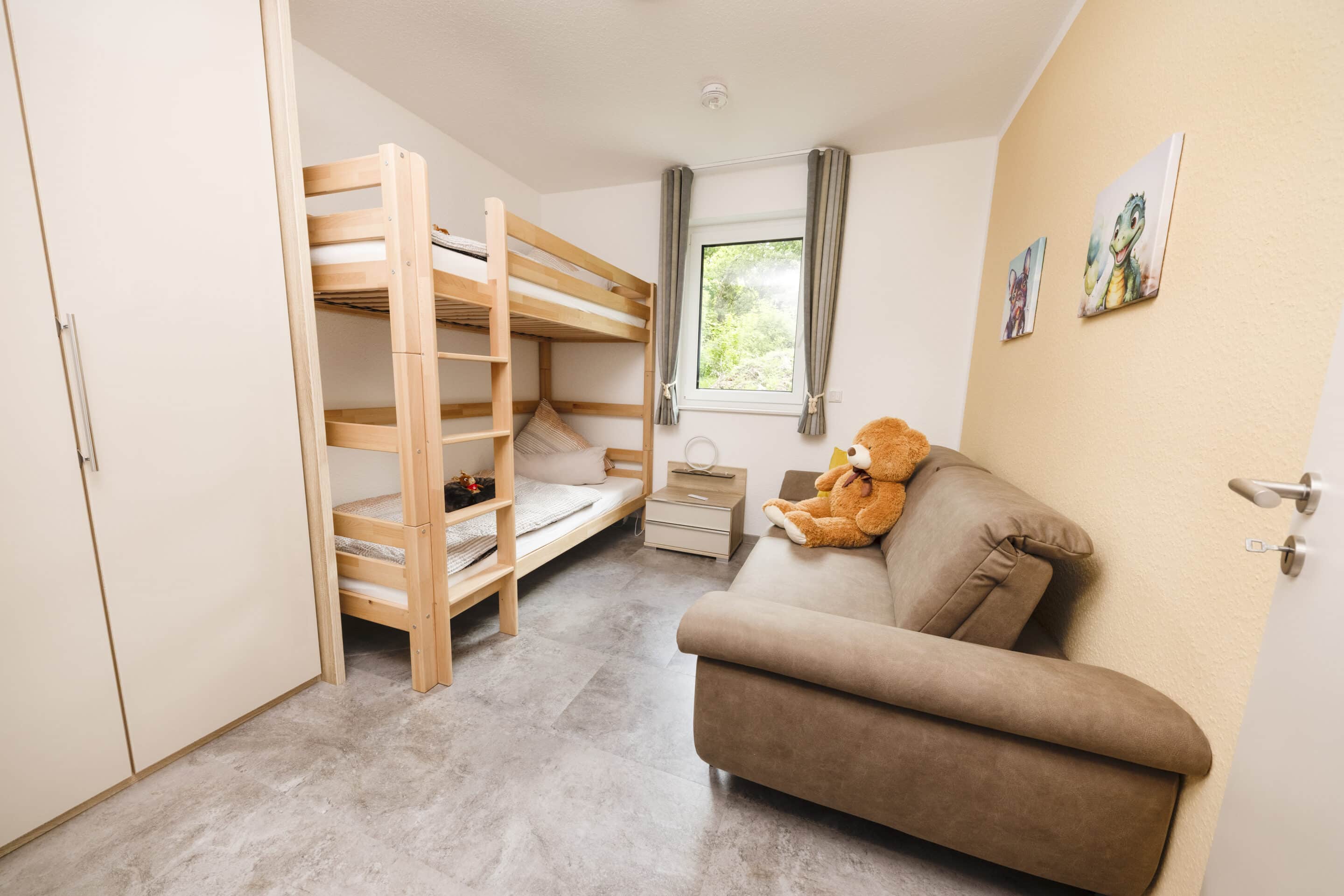 Das Kinderzimmer ist ideal für unsere kleinen Gäste, mit einem stabilen Etagenbett, einem Schrank und einem Sofa. Es ist ein wunderbarer Rückzugsort für die Kleinen, und mit einem eigenen Sofa wird es noch gemütlicher! So kann das Kinderzimmer nicht nur zum Spielparadies, sondern auch zu einem Ort, an dem sie entspannen können. Ein perfekter Ort für Spaß und Unterhaltung!
